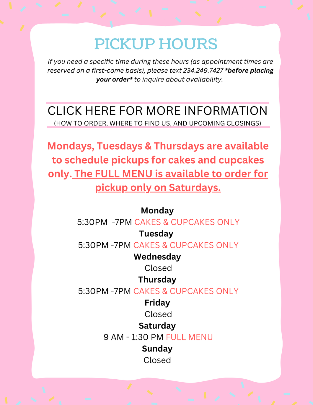 Ginger's Gluten Free Cupcakes LLC is an exclusively gluten-free licensed home bakery located in Warren, Ohio! My specialty is creating baked goods that are hard to find gluten-free, and I'm always working on developing something new and exciting in our kitchen. Orders are accepted through this site with just two business days notice and order pickups are scheduled by appointment. Make yourself at home, check out my vast menu (one of the largest gluten-free menus in the nation!), and learn all about my little bakery, where everything is made, from-scratch, to-order, the same day you pick up.